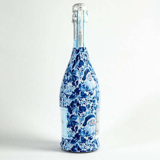Prosecco Bottle Wrap - Blue & White Santa