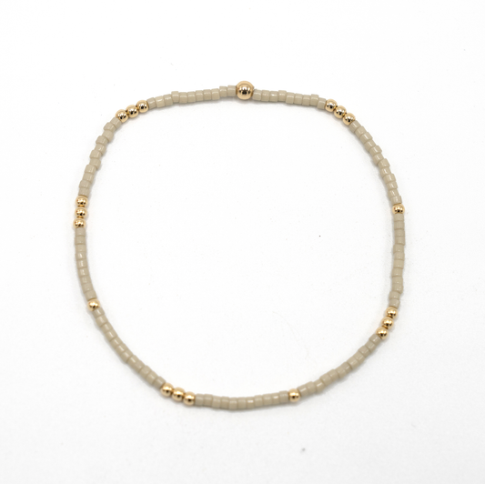 The Nantucket Shimmer Gray & 14k Gold- Filled Beaded Bracelet: 6.5"